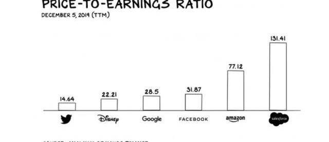 由于市场失去了对管理层,董事会和公司前景的信心,Twitter股票经历了大幅盈利多次收缩,以公司市值来看,如今Twitter的收益倍数低于其他媒体巨头,而如今腾讯,Facebook、Google的市值已是Twitter市值的17倍,24倍和39倍。