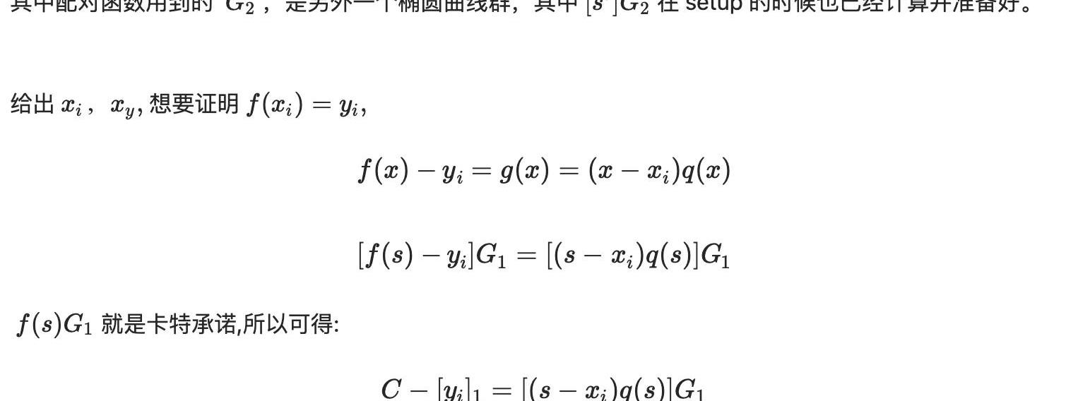 卡特证明单个数据的公式推衍如下,由于椭圆曲线群只支持加法同态,无法支持多项式之间的乘法,这是就需要通过配对函数解决,