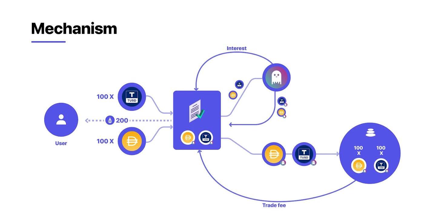 更稳定的稳定币。作为其他稳定币的对冲一种基于AMM的高效稳定币互换的方法。需要最少的治理。捕捉特定基础资产出现的收益率瞬时上升趋势,即我们有时看到Dai,sUSD,bUSD出现30%+的APR,但仅持续几个小时。风险分散。该协议对于中心化稳定币是否可以用作基础资产没有异议。但是,这里面可能会有一些实质性的多元化潜力。
