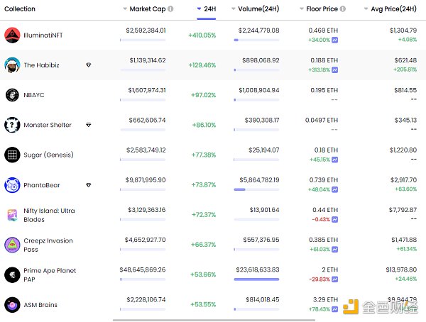 24小时内销售价格前十的NFT 数据来源:NFTGO