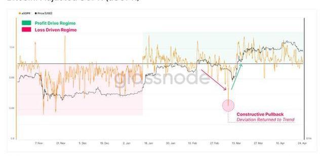 亏损主导机制:连续低于1.0表明投资者正在锁定亏损,而盈亏平衡盈利能力的任何回报通常被用作退出点。